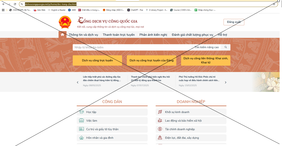 Qua rà soát, phát hiện trang web:👉 https://dichvucongquocgia.net/p/home/dvc-trang-chu.html KHÔNG PHẢI là Cổng Dịch vụ công chính thức của Nhà nước.