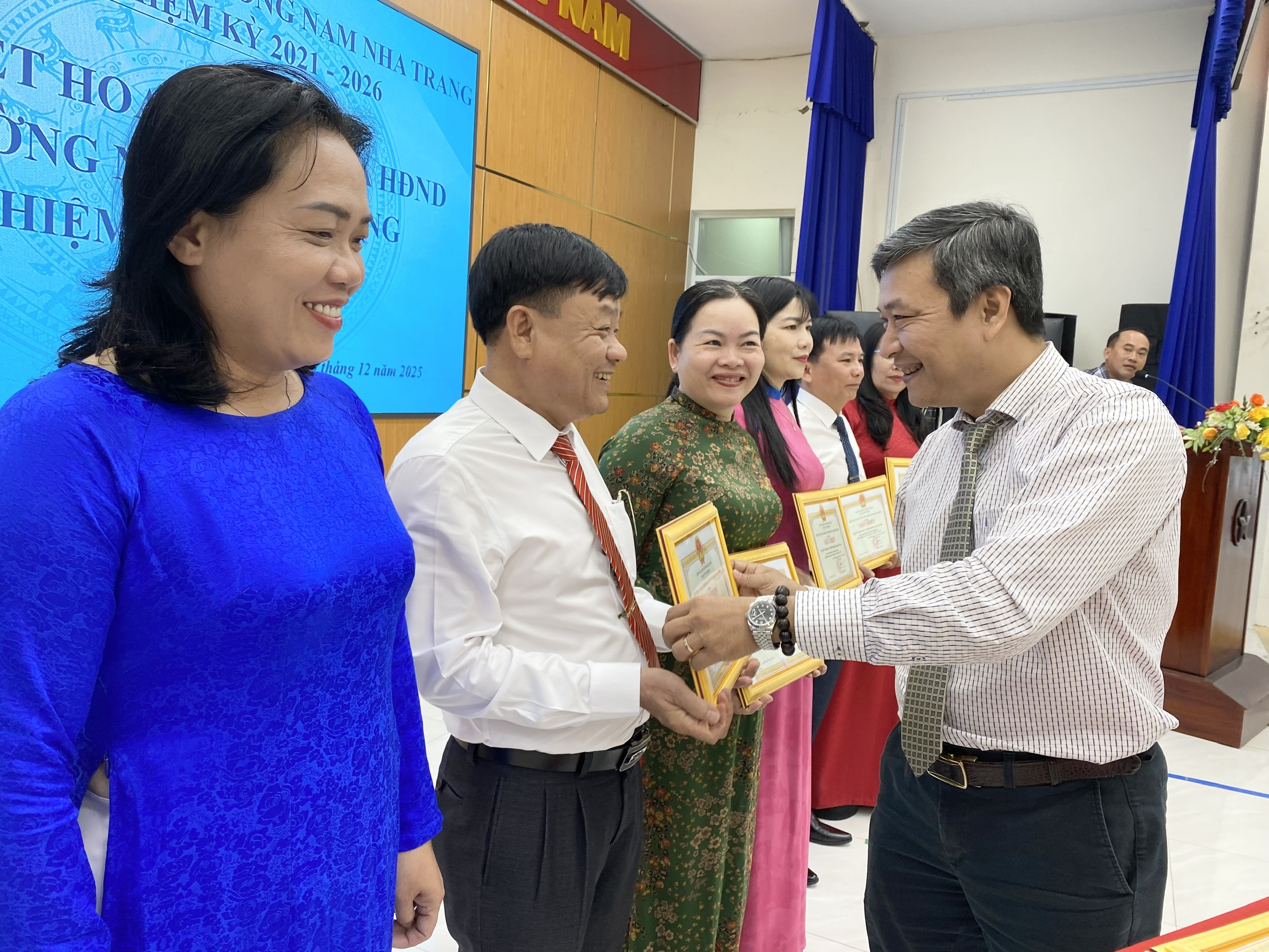HĐND phường thống nhất biểu quyết thông qua 10 Nghị quyết về: kế hoạch phát triển kinh tế - xã hội phường Nam Nha Trang năm 2026; dự toán thu NSNN trên địa bàn, thu chi ngân sách địa phương và phương án phân bổ dự toán ngân sách phường năm 2026; điều chỉnh, bổ sung Kế hoạch đầu tư công năm 2025; dự kiến Kế hoạch đầu tư công năm 2026; Kế hoạch đầu tư công trung hạn 5 năm 2026 - 2030; kỳ họp thường lệ của HĐND phường năm 2026; dự toán kinh phí hoạt động của Hội đồng nhân dân phường năm 2026; Kết luận giám sát chuyên đề “Công tác quản lý trật tự mỹ quan đô thị trên địa bàn phường”; Kết luận giám sát chuyên đề “Công tác giải quyết chế độ chính sách cho quân nhân xuất ngũ trên địa bàn phường”; Kết luận giám sát về “Công tác tiếp công dân, giải quyết khiếu nại tố cáo UBND phường”.
