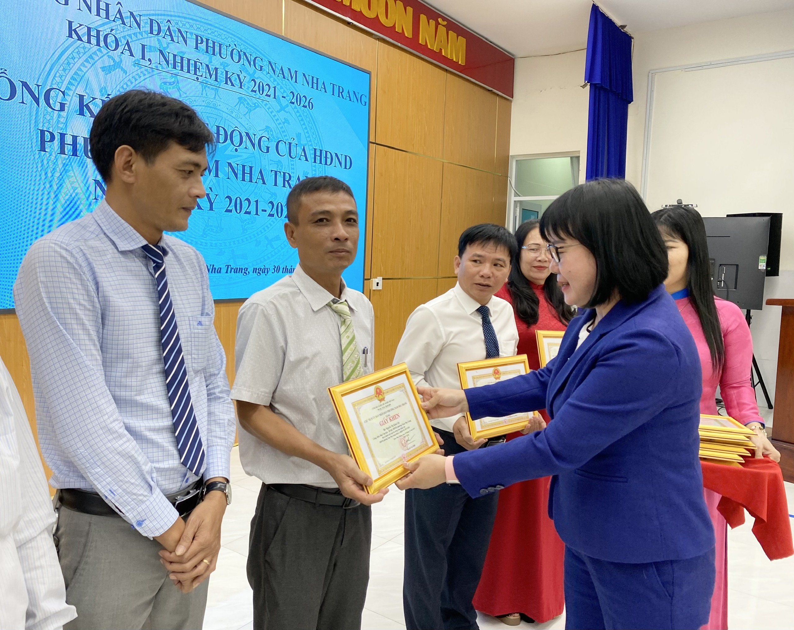Dịp này, Chủ tịch UBND phường tặng giấy khen cho 20 tập thể, 30 cá nhân có thành tích xuất sắc trong hoạt động của HĐND phường khóa I, nhiệm kỳ 2021 - 2026.