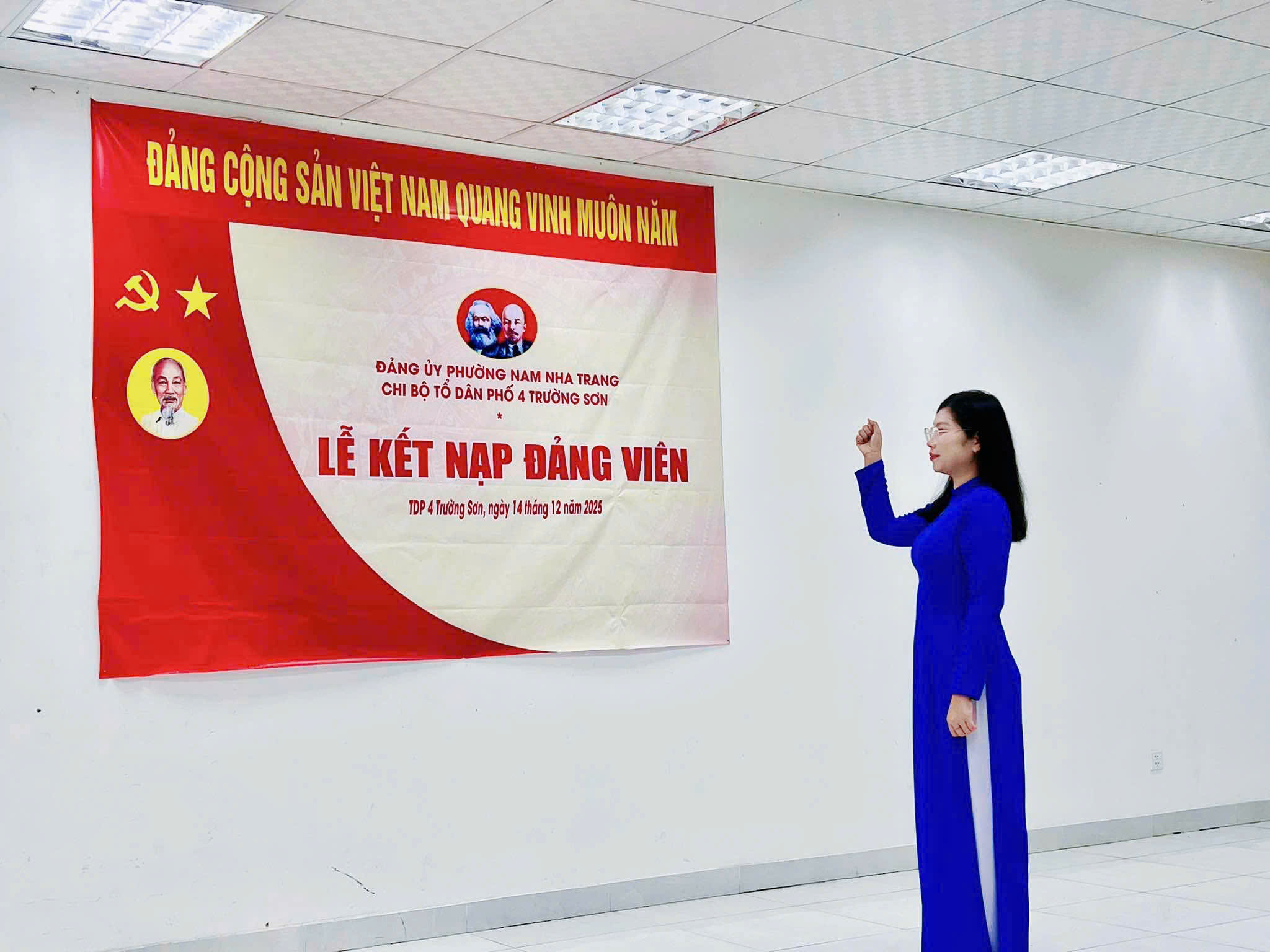 Lễ kết nạp đảng viên mới tại chi bộ Tổ dân phố
