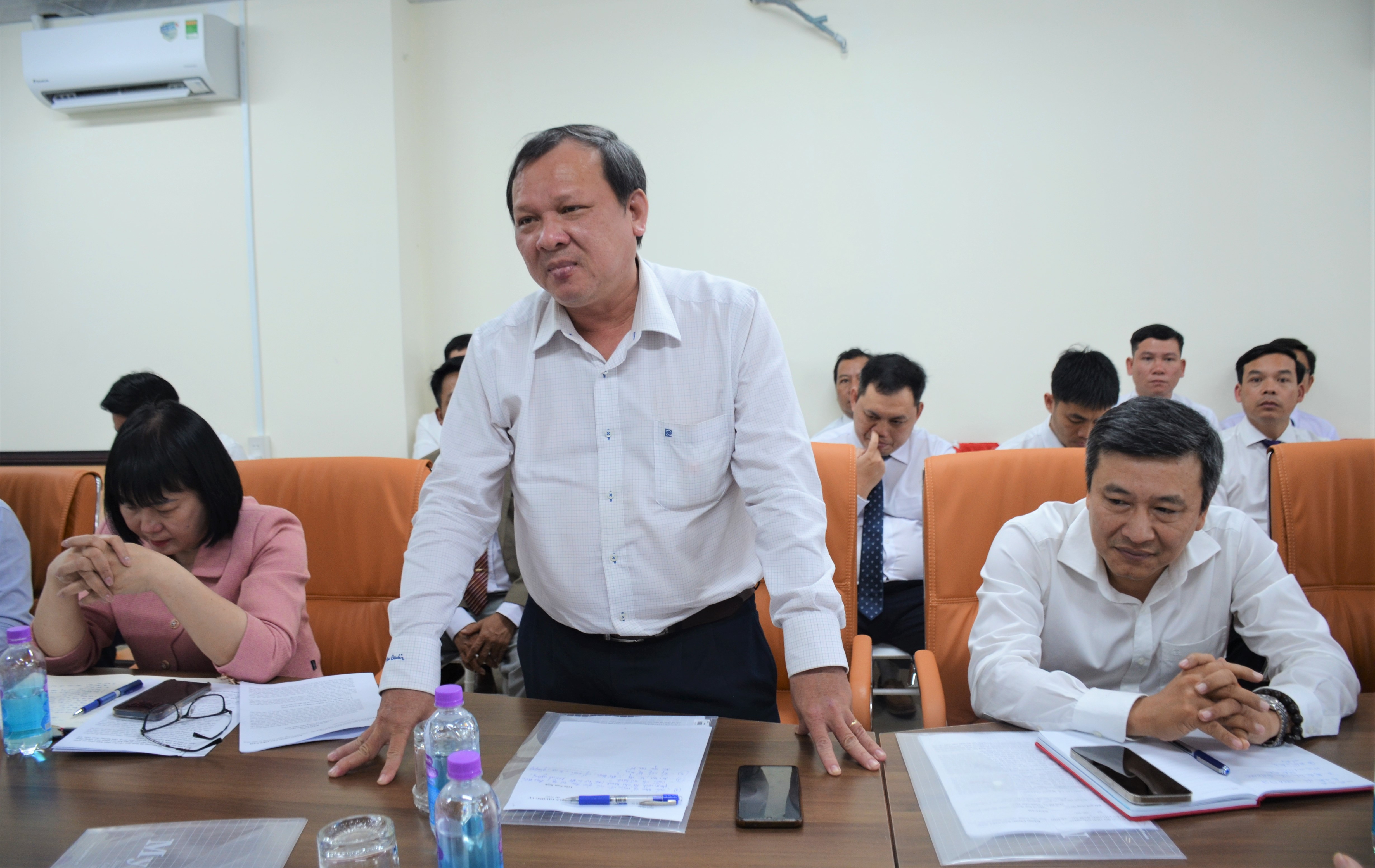 Ông Trần Nam Bình - Tỉnh ủy viên, Bí thư Đảng ủy, Chủ tịch HĐND phường (đứng) phát biểu tại buổi làm việc.