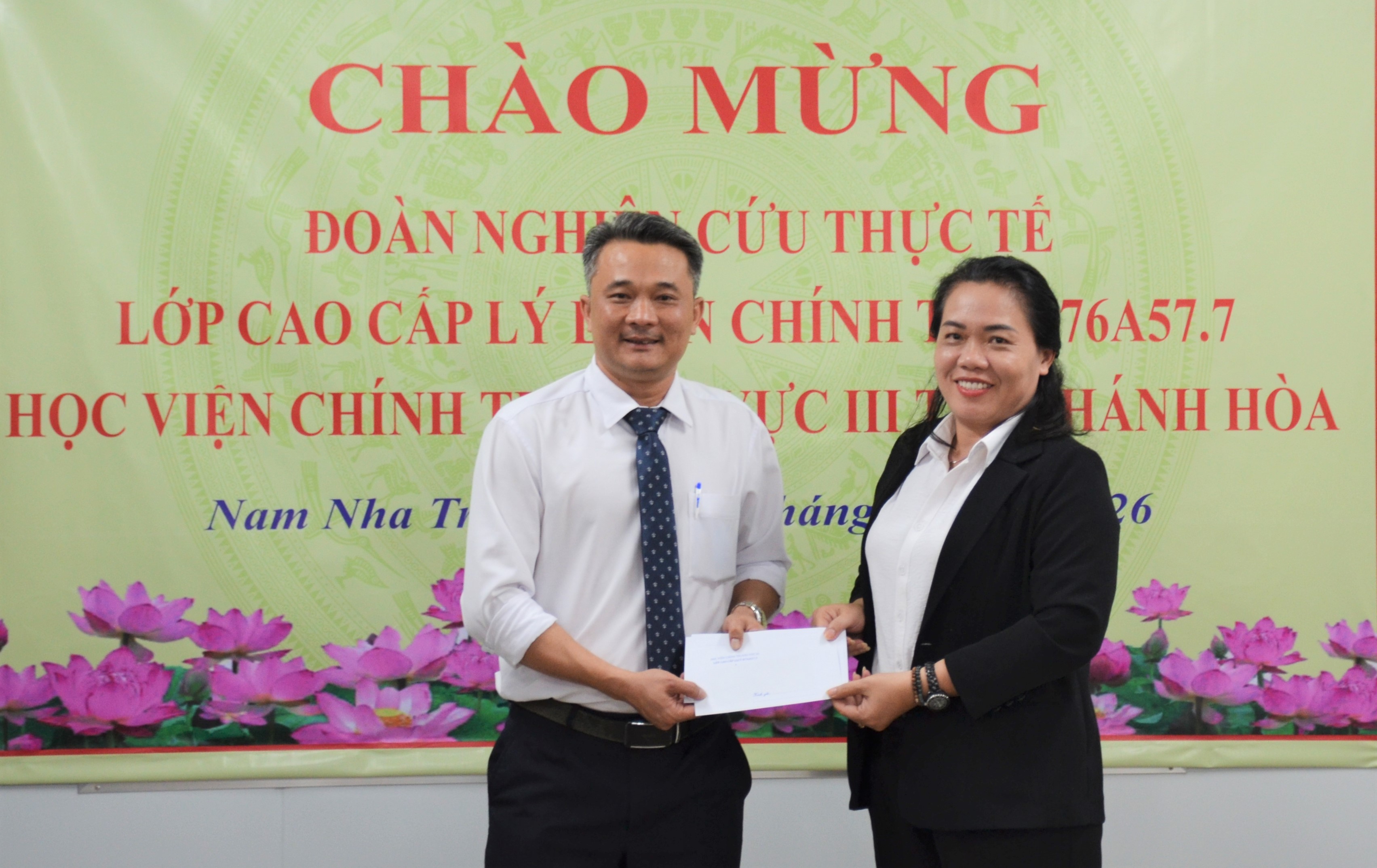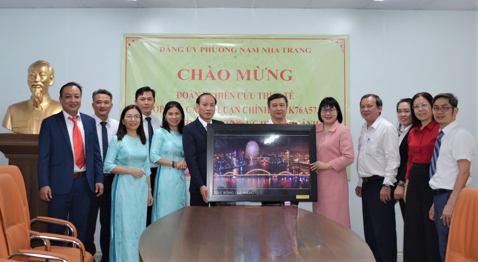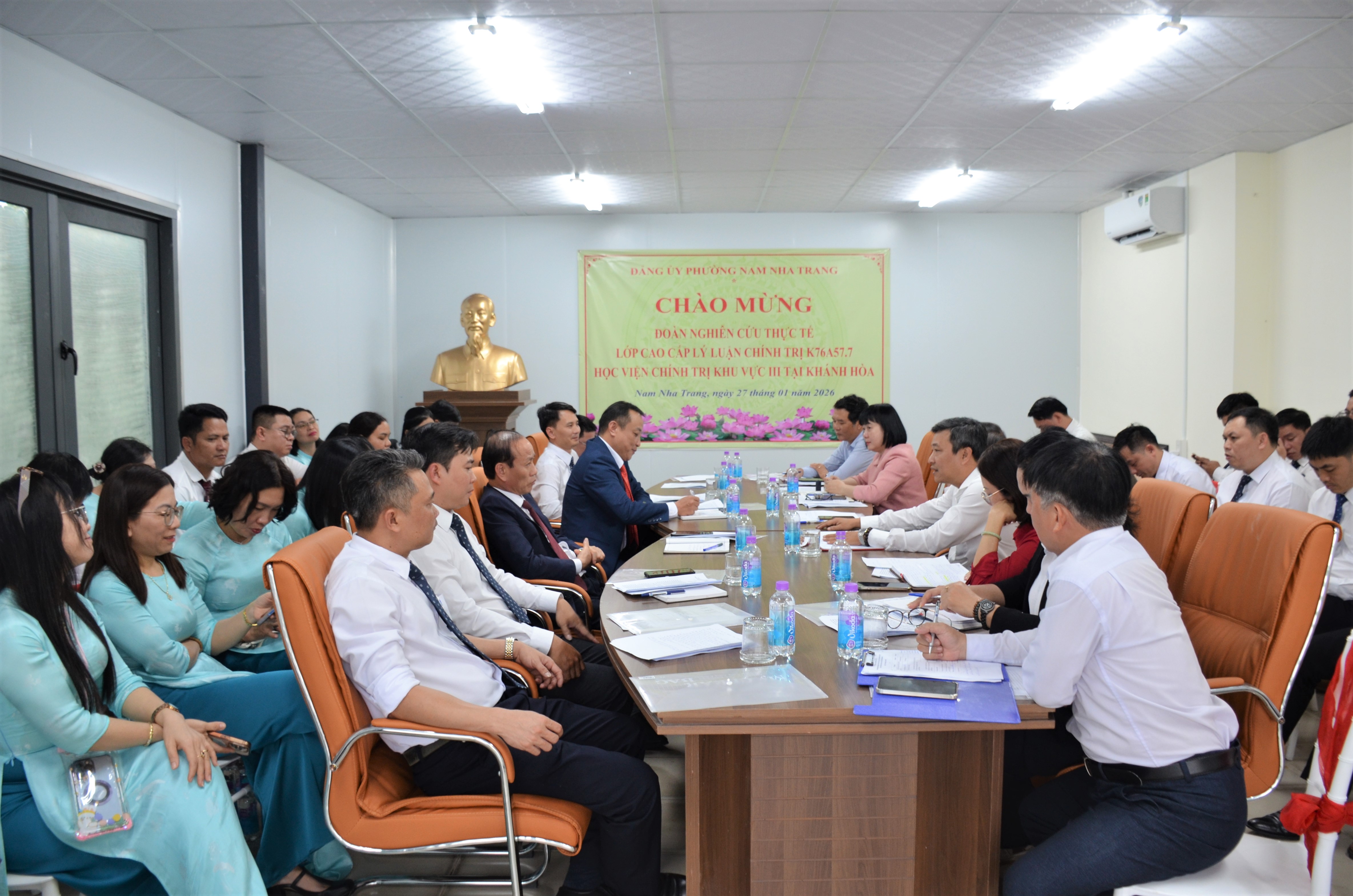 Chiều 27/1, ông Trần Nam Bình - Tỉnh ủy viên, Bí thư Đảng ủy, Chủ tịch HĐND phường Nam Nha Trang chủ trì buổi tiếp và làm việc với đoàn nghiên cứu thực tế Lớp cao cấp lý luận chính trị K76A57.7 của Học viện Chính trị khu vực III do ông Nguyễn Mậu Linh - Tiến sĩ, Trưởng Khoa Tư tưởng Hồ Chí Minh, Học viện Chính trị khu vực III dẫn đầu. Tham gia buổi làm việc còn có các vị: Bà Lê Thị Huyên - Phó Bí thư Thường trực Đảng ủy, Chủ nhiệm Ủy ban Kiểm tra Đảng ủy phường; bà Lê Thị Thiên Lý - Ủy viên Ban Thường vụ Đảng ủy, Chủ tịch Ủy ban Mặt trận Tổ quốc (MTTQ) Việt Nam phường; ông Bảo Thọ - Ủy viên Ban Thường vụ Đảng ủy, Phó Chủ tịch HĐND phường; các vị trưởng, phó ban, đơn vị liên quan.