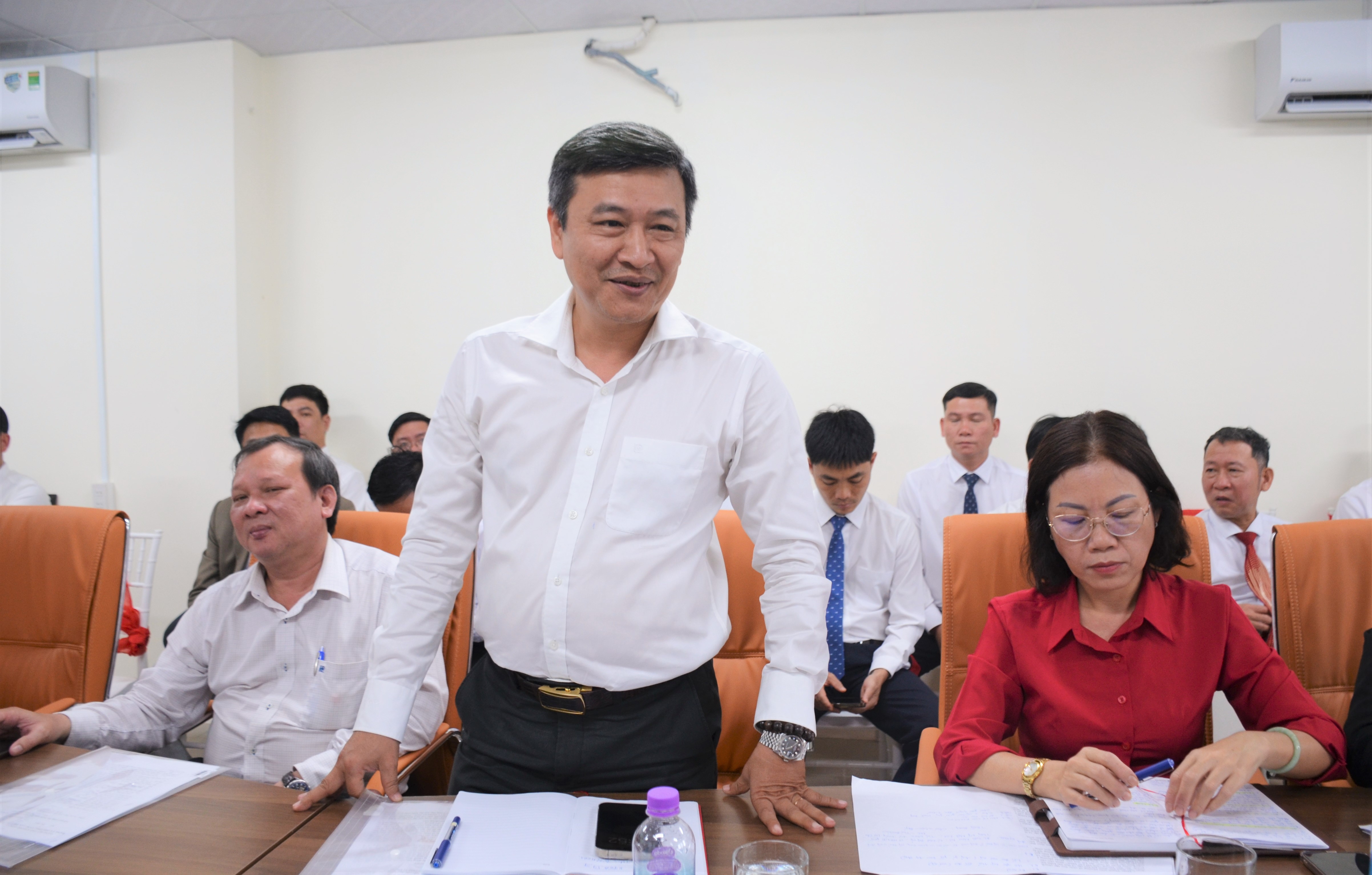 Ông Nguyễn Mậu Linh - Tiến sĩ, Trưởng Khoa Tư tưởng Hồ Chí Minh, Học viện Chính trị khu vực III phát biểu tại buổi làm việc.