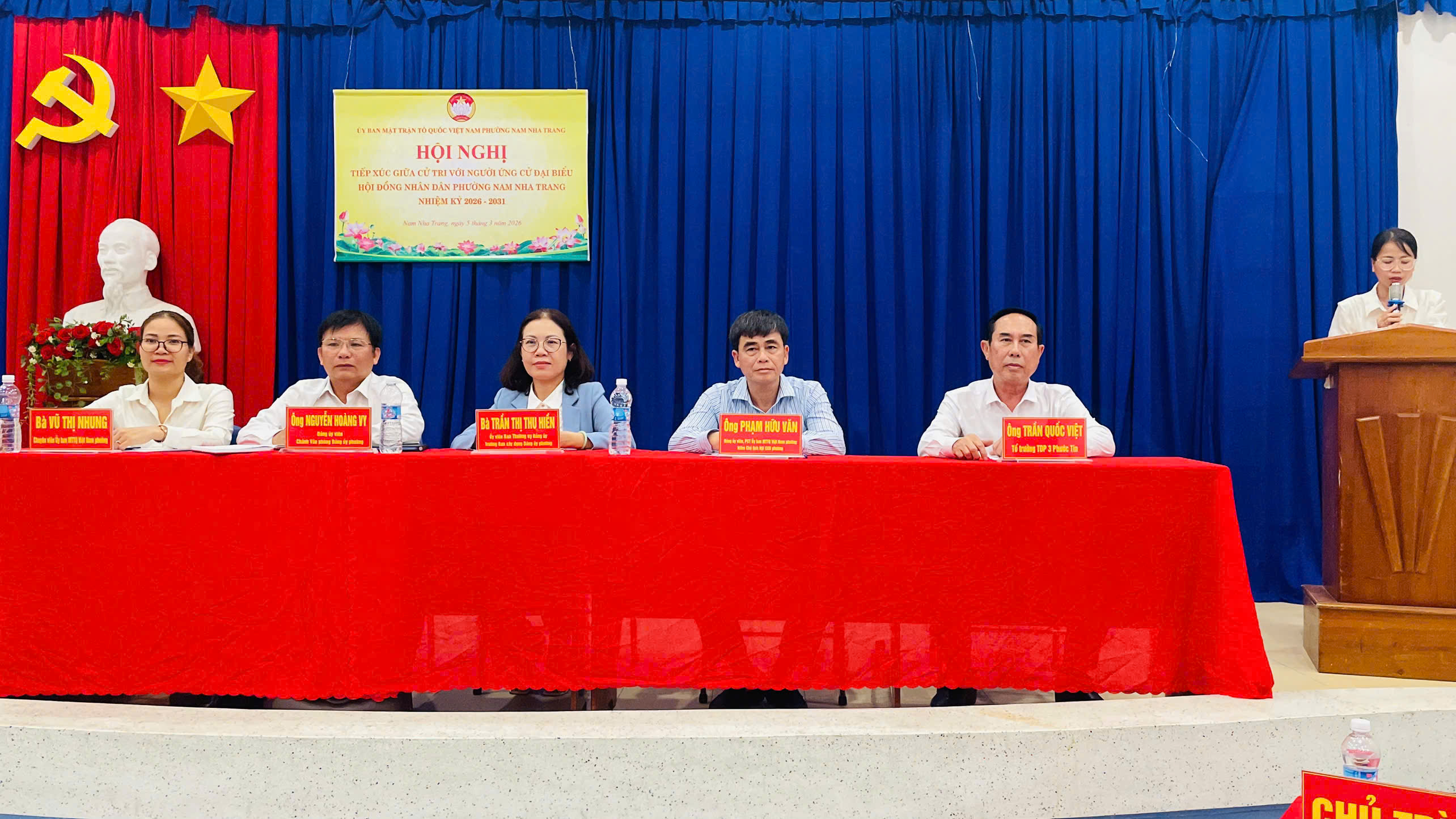 Tối 5/3, tại hội trường 60 Phước Long, Ban Thường trực Ủy ban Mặt trận Tổ quốc (MTTQ) Việt Nam phường Nam Nha Trang tổ chức Hội nghị tiếp xúc giữa cử tri với người ứng cử đại biểu HĐND phường nhiệm kỳ 2026 – 2031 tại đơn vị bầu cử số 4.