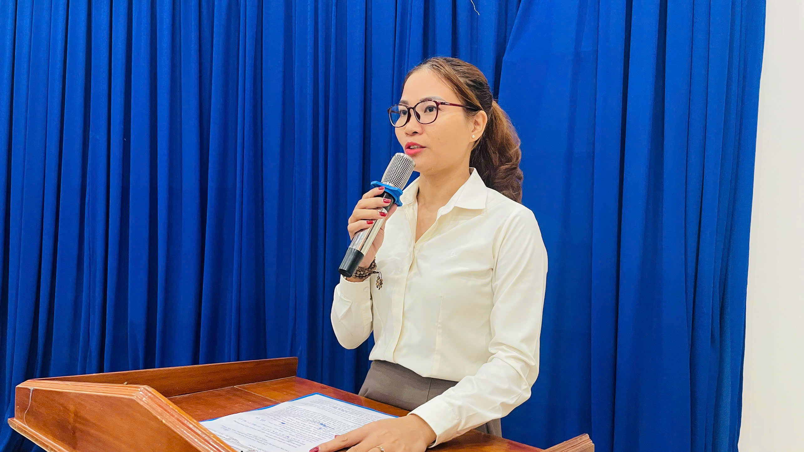 Bà Trần Thị Thu Hiền trình bày chương trình hành động.