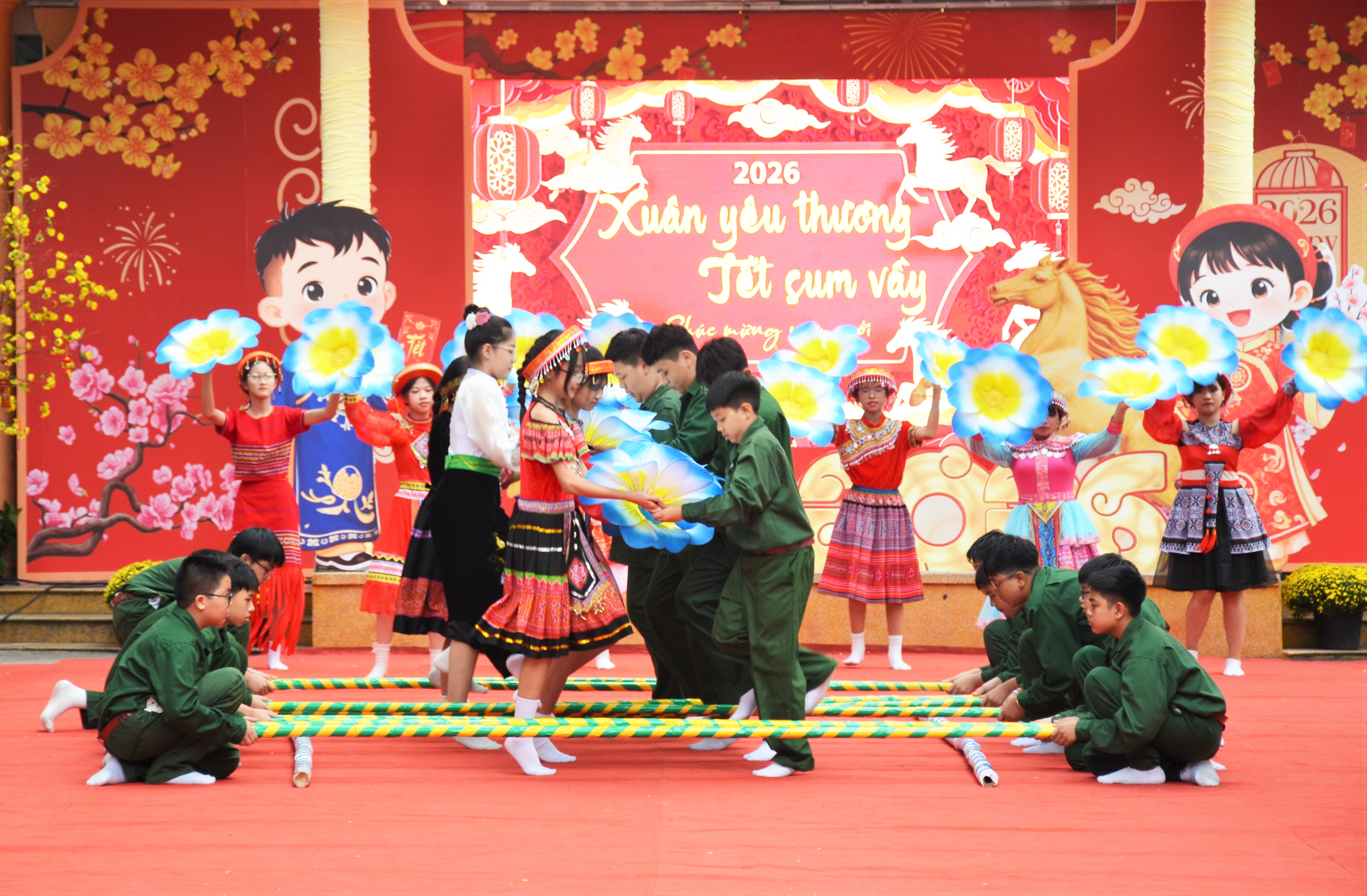 Trong khuôn khổ của Chương trình đã diễn ra nhiều hoạt động vui xuân, đón Tết với sự tham gia của học sinh, giáo viên toàn Trường: Thi gói và trưng bày bánh chưng, bánh tét; thi làm và trưng bày mứt Tết; thi nhảy sạp.