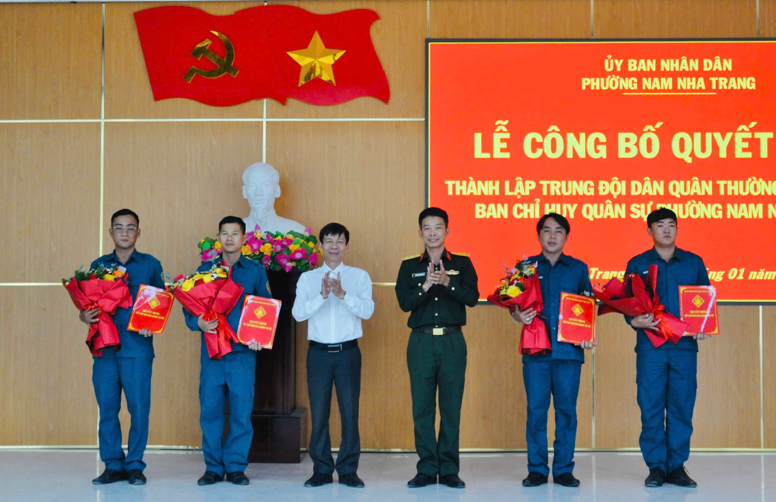 Cũng tại buổi lễ, đã công bố các Quyết định của Ban Chỉ huy quân sự phường Nam Nha Trang về việc bổ nhiệm cán bộ chỉ huy đơn vị dân quân.