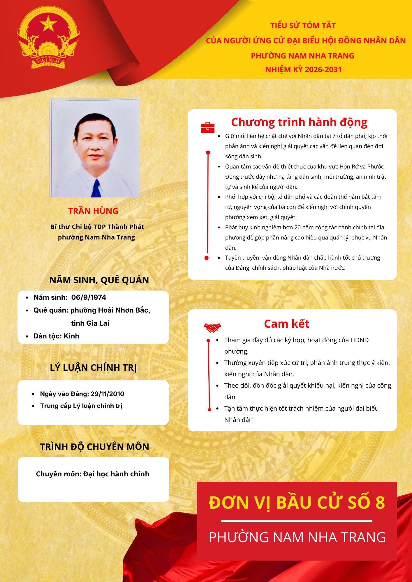 Bài viết: Chương trình hành động của người ứng cử đại biểu HĐND phường Nam Nha Trang nhiệm kỳ 2026-2031 (đ/c Trần Hùng)