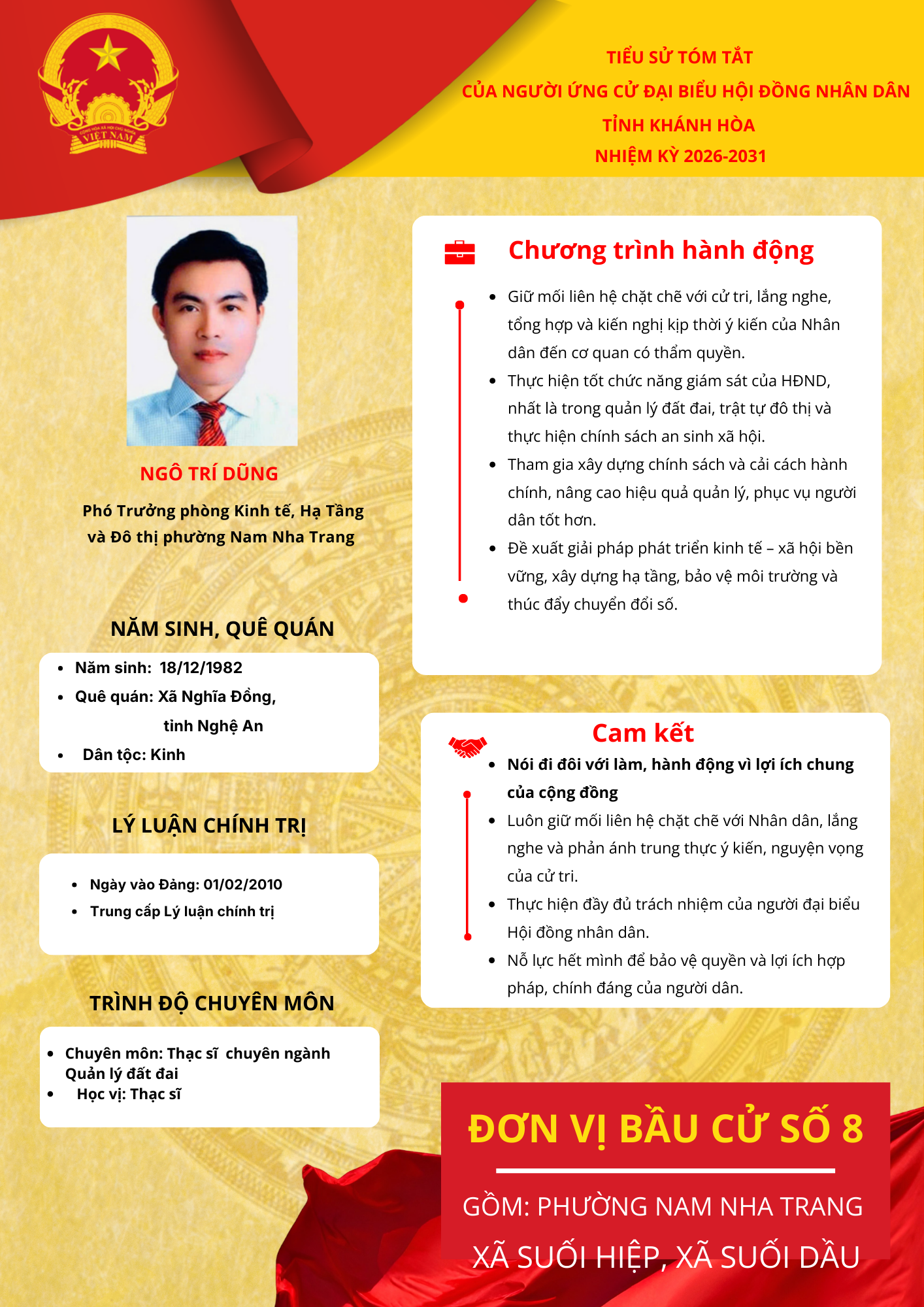 Bài viết: Chương trình hành động của người ứng cử đại biểu HĐND tỉnh Khánh Hòa nhiệm kỳ 2026 - 2031 (đ/c Ngô Trí Dũng)
