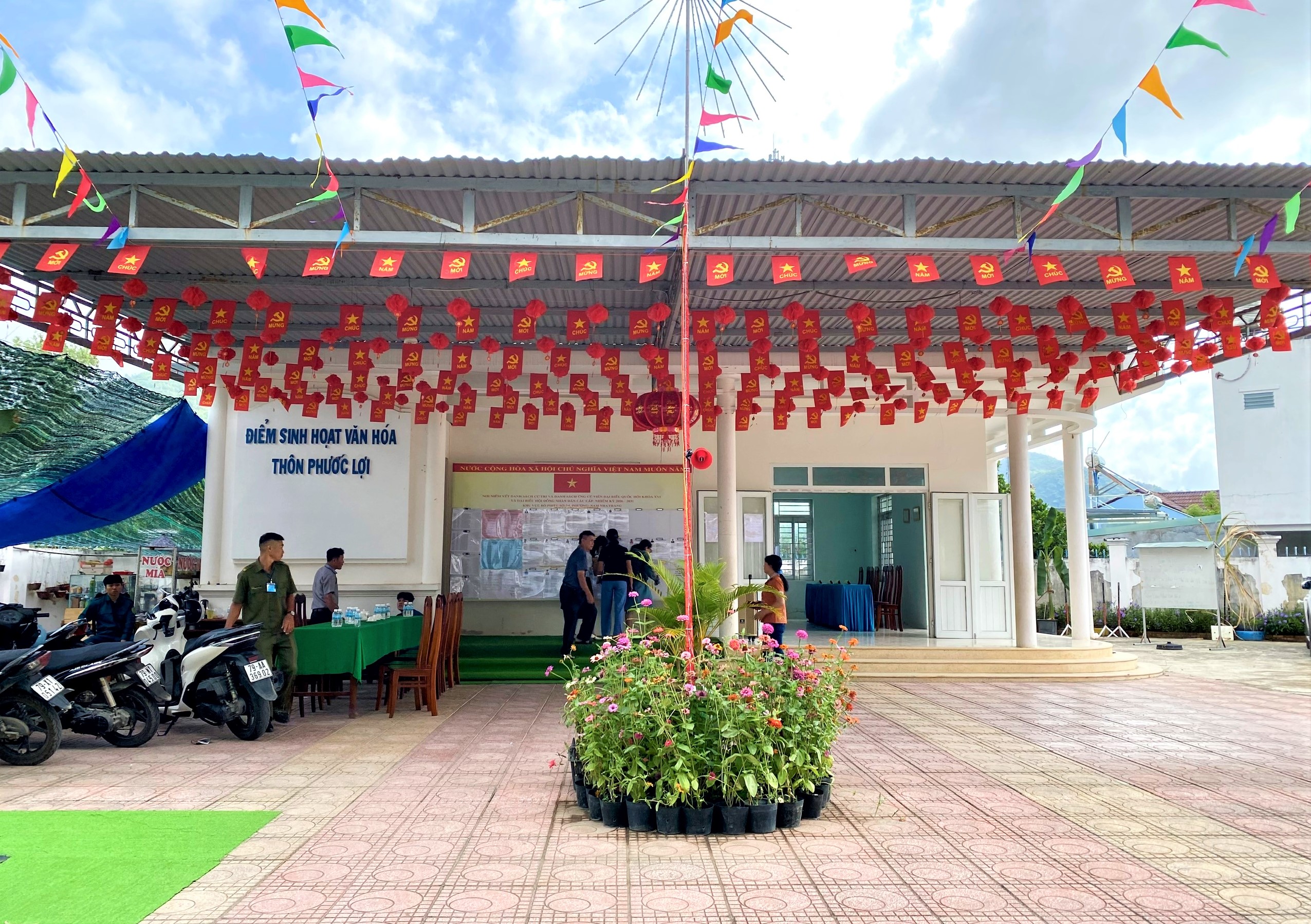 Các khu vực bỏ phiếu trên địa bàn phường đã được trang trí cờ hoa rực rỡ.