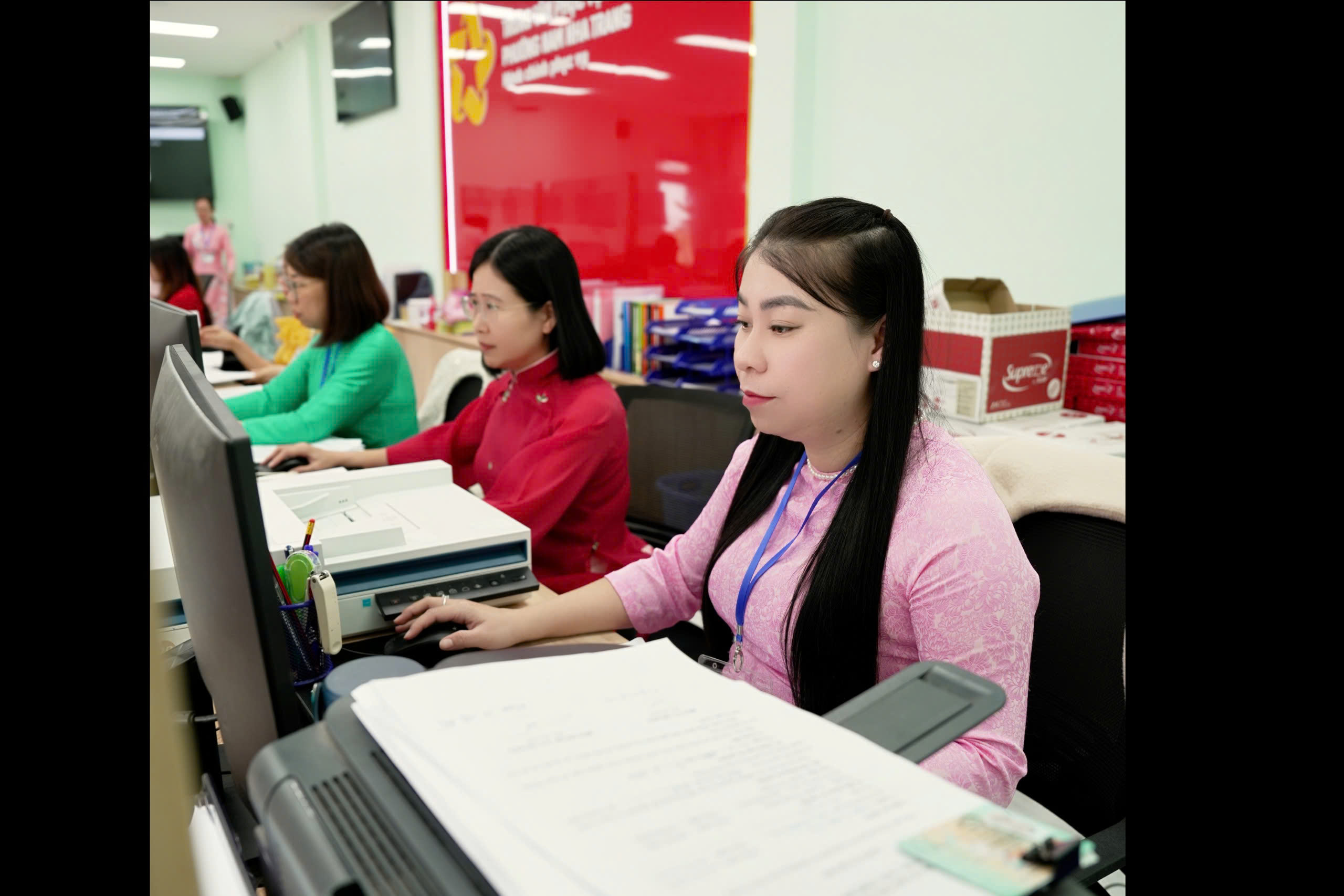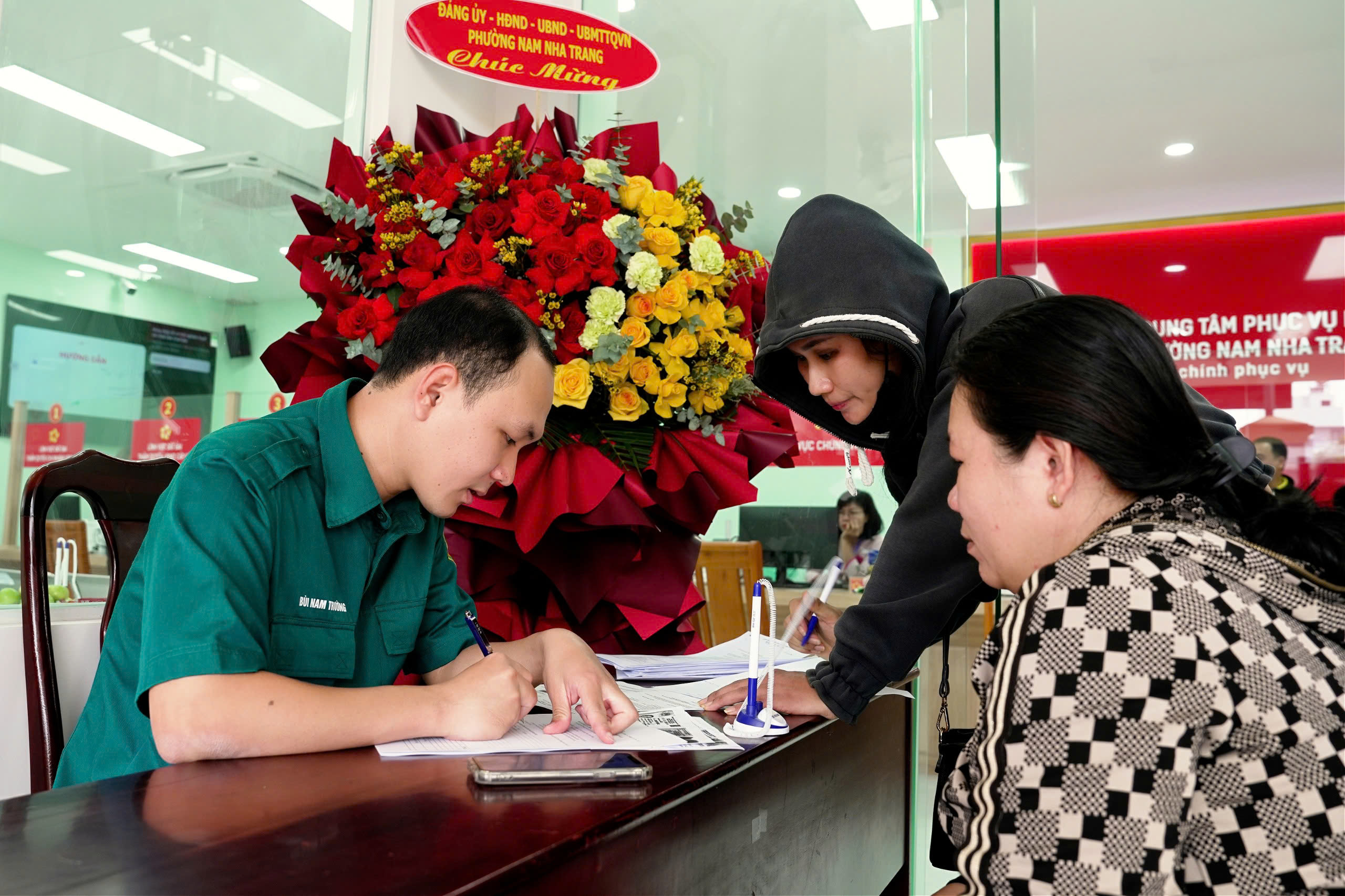 Trong giai đoạn đầu triển khai mô hình chính quyền địa phương hai cấp, do điều kiện cơ sở vật chất còn hạn chế, Trung tâm Phục vụ hành chính công phường Nam Nha Trang được bố trí và tận dụng 01 phòng làm việc của UBND xã Vĩnh Thái (cũ) để thành lập điểm tiếp nhận và trả kết quả. Với diện tích và không gian làm việc hạn chế, các quầy tiếp nhận hồ sơ phải bố trí chật hẹp, sát nhau, chưa đáp ứng đầy đủ yêu cầu phục vụ trong tình hình mới. Trong bối cảnh đó, khối lượng hồ sơ, thủ tục hành chính phát sinh ngày càng lớn, gây áp lực đáng kể đối với đội ngũ cán bộ, công chức cũng như điều kiện cơ sở vật chất hiện có.