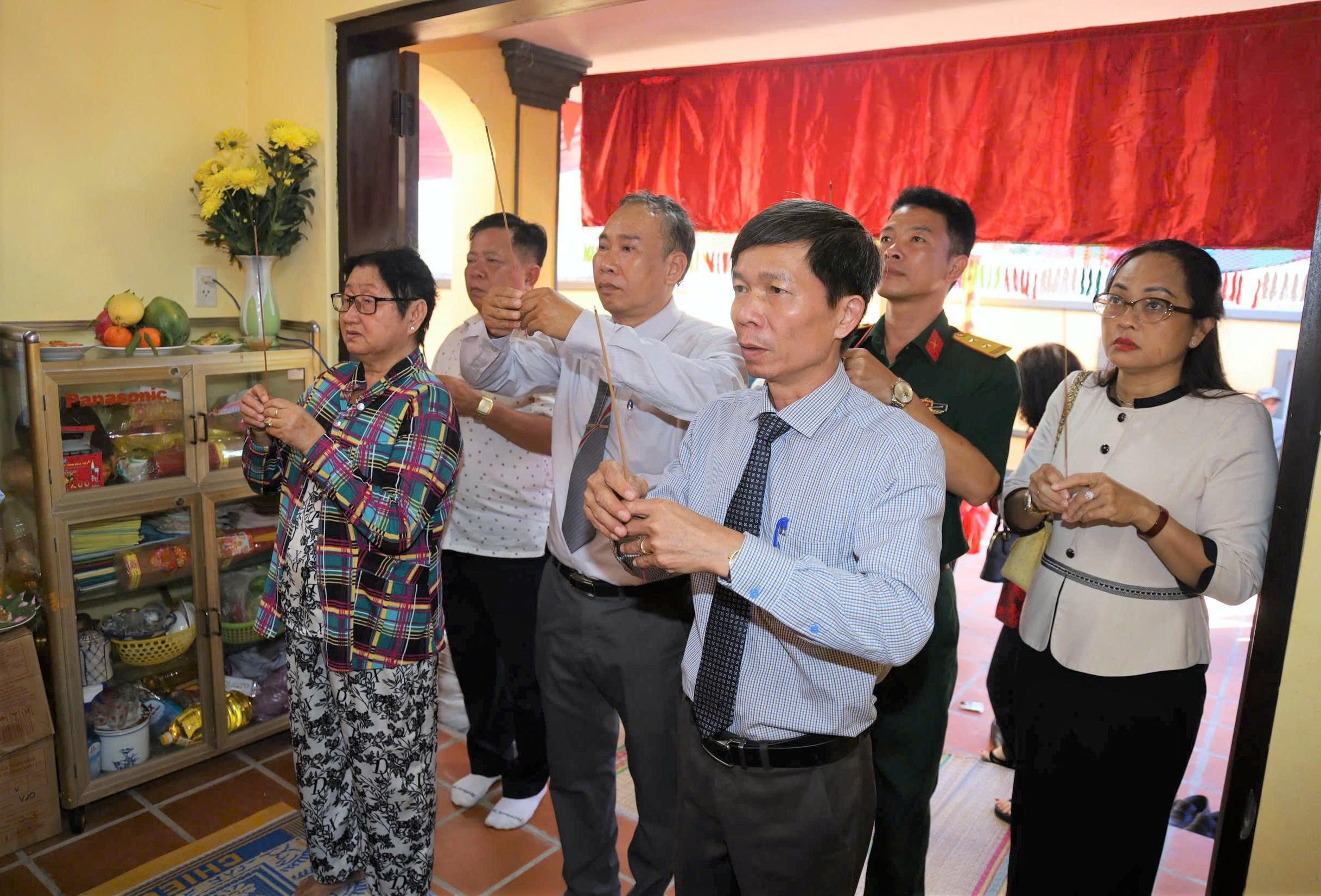 Ông Nguyễn Văn Minh – Phó Bí thư Đảng ủy, Chủ tịch UBND phường (hàng đầu) và ông Cao Đình Trung - Ủy viên Ban Thường vụ Đảng ủy, Phó Chủ tịch Thường trực UBND phường (thứ 3 từ trái sang) dâng hương thể hiện lòng thành kính đối với Ông Nam Hải.