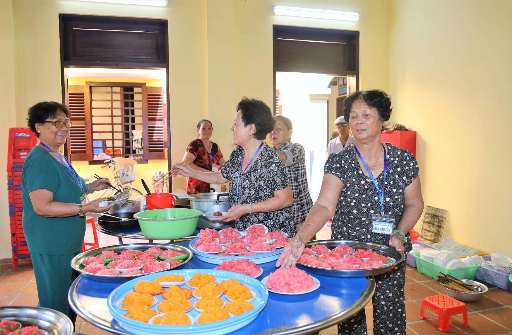 Trong thời gian lễ hội, khu vực bếp của Đình Trường Đông luôn rôm rả tiếng nói cười của các bà, các chị. Tất cả cùng nhặt rau, vo gạo, chăm chút cho mâm cỗ dâng cúng thần Nam Hải. Bà Nguyễn Thị Ân - tổ dân phố Trường Đông cho biết, mỗi ngày có hơn 10 chị em tới phụ nấu đồ cúng, bữa ăn đãi khách; có chị tới phụ giúp từ 3 giờ đến 21 giờ. Việc nấu nướng bận rộn nhưng rất vui vì các chị được góp công chuẩn bị, được thể hiện lòng thành với thần Nam Hải, lại được gặp gỡ, chia sẻ về cuộc sống.