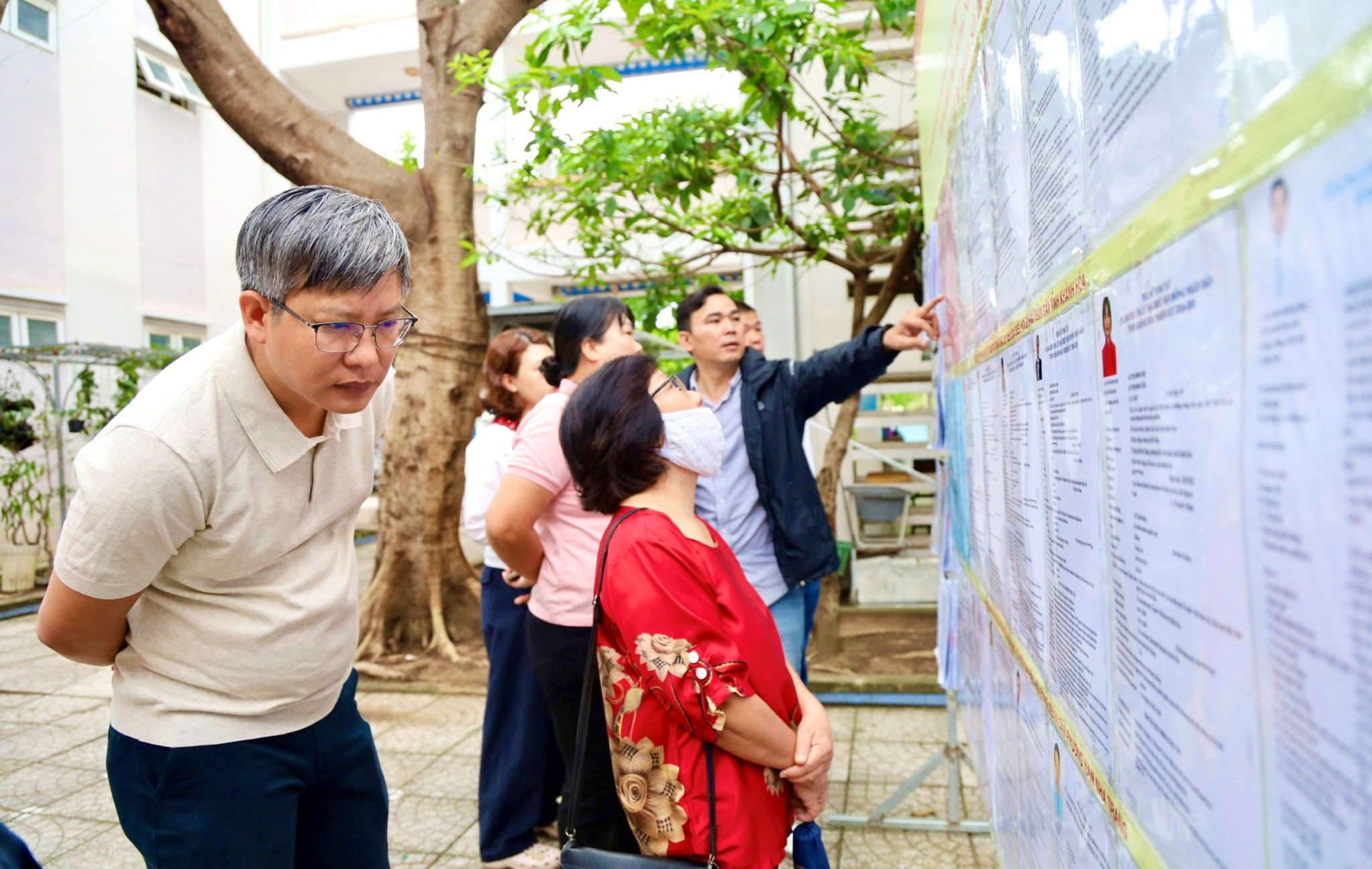 Cử tri tìm hiểu về các ứng cử viên trước khi vào phòng bỏ phiếu.
