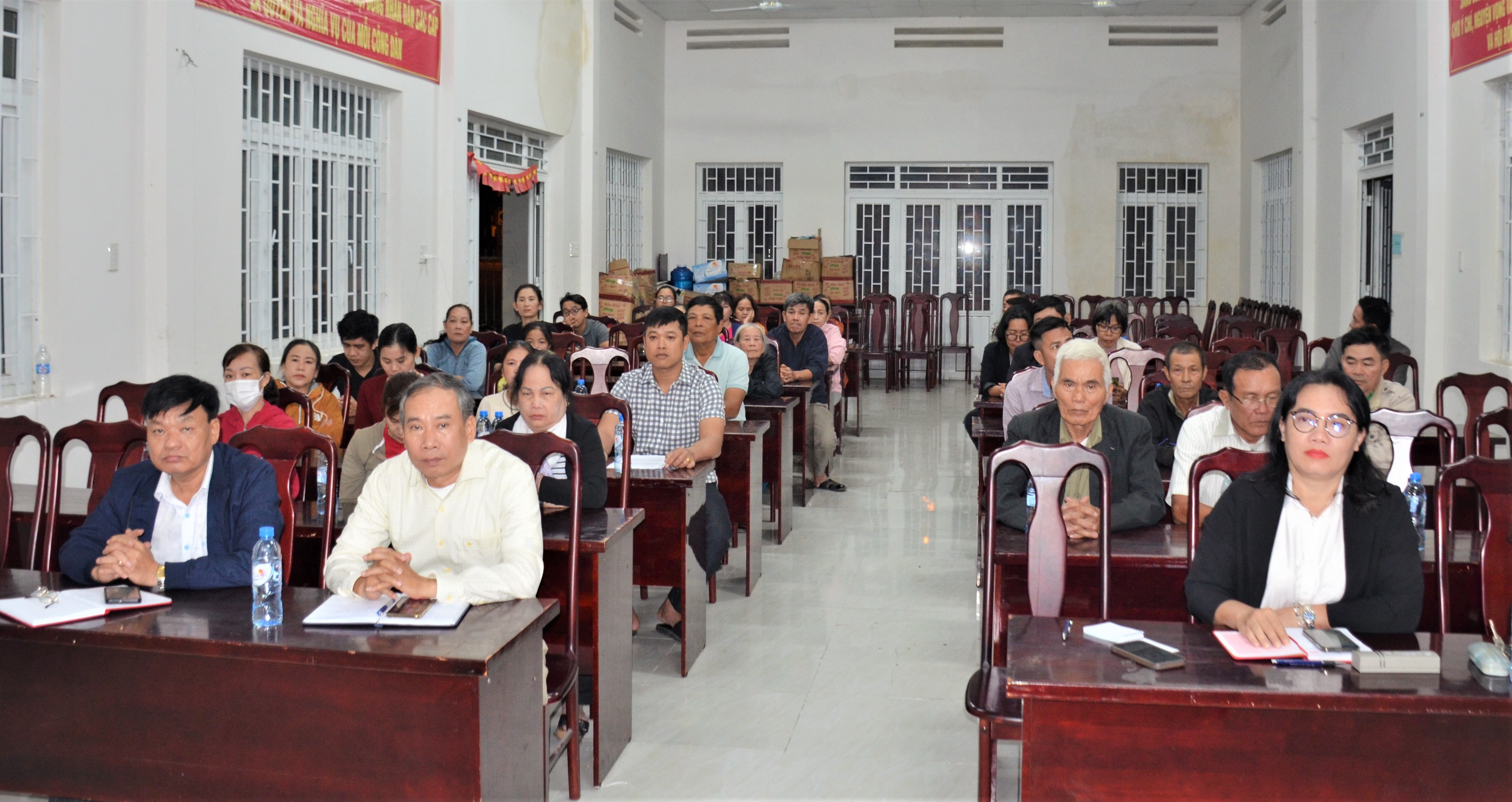 Bà Lê Thị Thiên Lý (hàng đầu, bìa phải) và ông Cao Đình Trung (hàng đầu, thứ 2 từ trái sang) dự hội nghị.