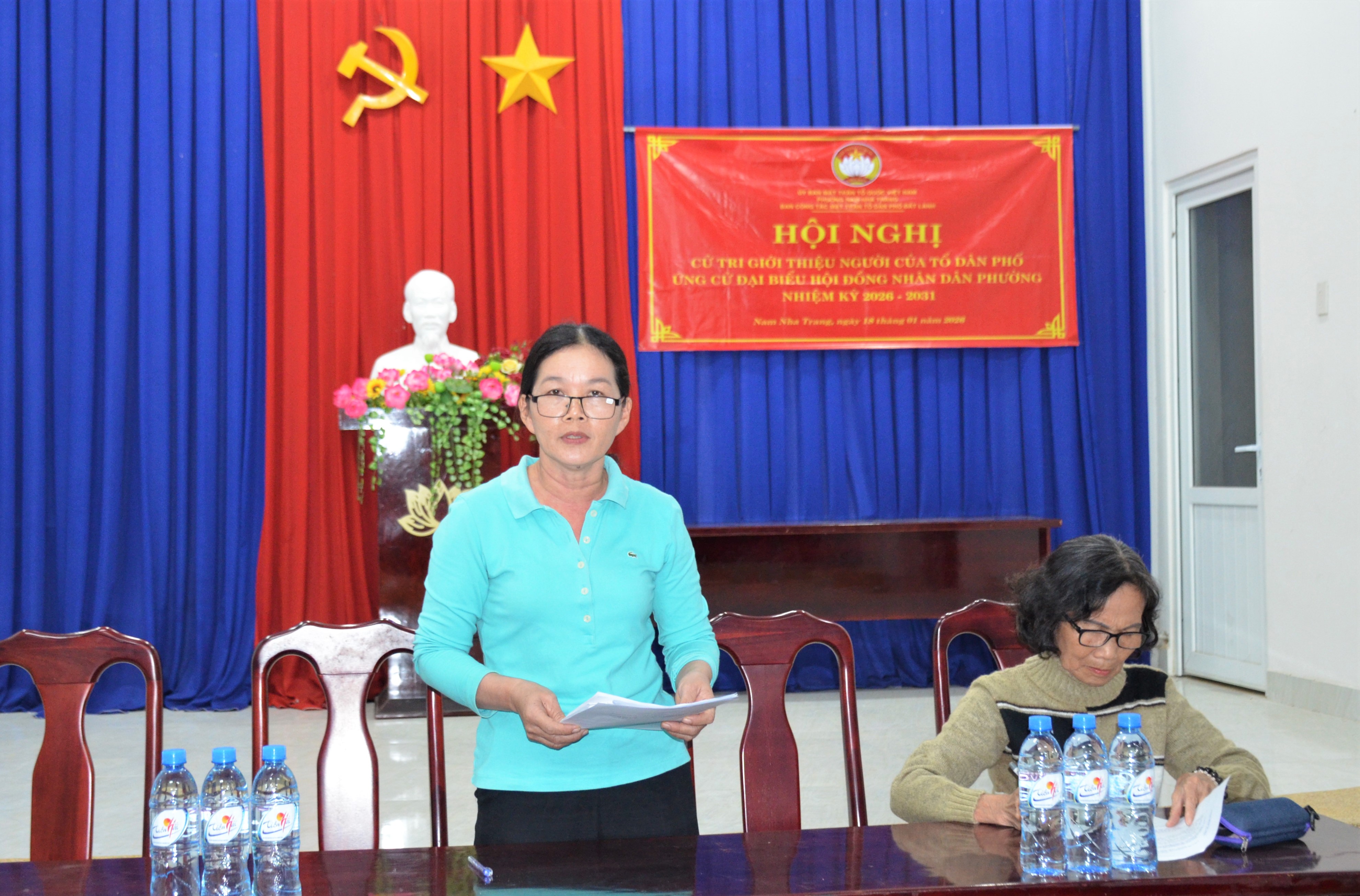Tối 18/1, Ban Công tác Mặt trận tổ dân phố (TDP) Đất Lành, phường Nam Nha Trang tổ chức Hội nghị cử tri giới thiệu người của TDP ứng cử đại biểu HĐND phường nhiệm kỳ 2026 - 2031. Bà Lê Thị Thiên Lý - Chủ tịch Ủy ban Mặt trận Tổ quốc Việt Nam phường; ông Cao Đình Trung - Phó Chủ tịch Thường trực UBND phường đến dự.